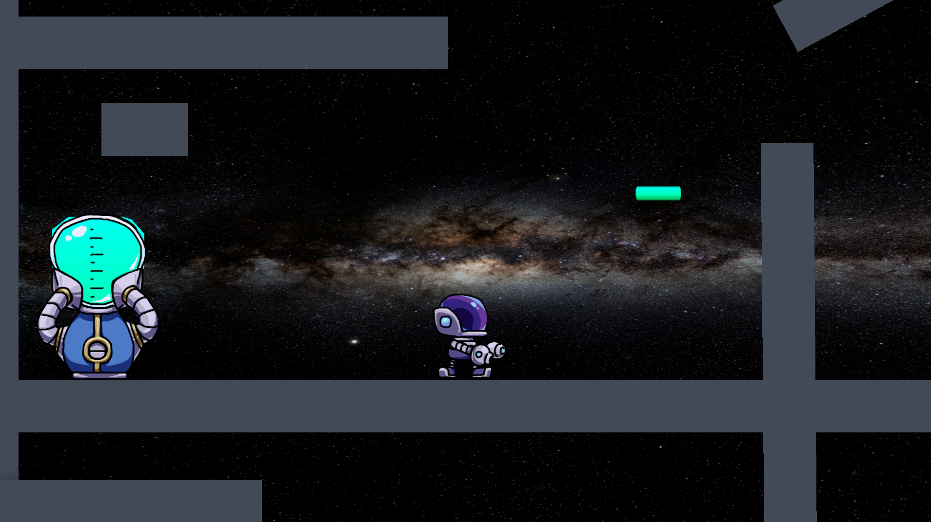 Space Boy Platformer Game was a small project made in a rush for school. I loved it's arcade feel, but I doubt we will revisit it. Besides the team was too big so we had an hard time coordinating. The robot itself belongs to Jorge and is likely to come in another project. Lets hope we can give a bright future to this character one day.